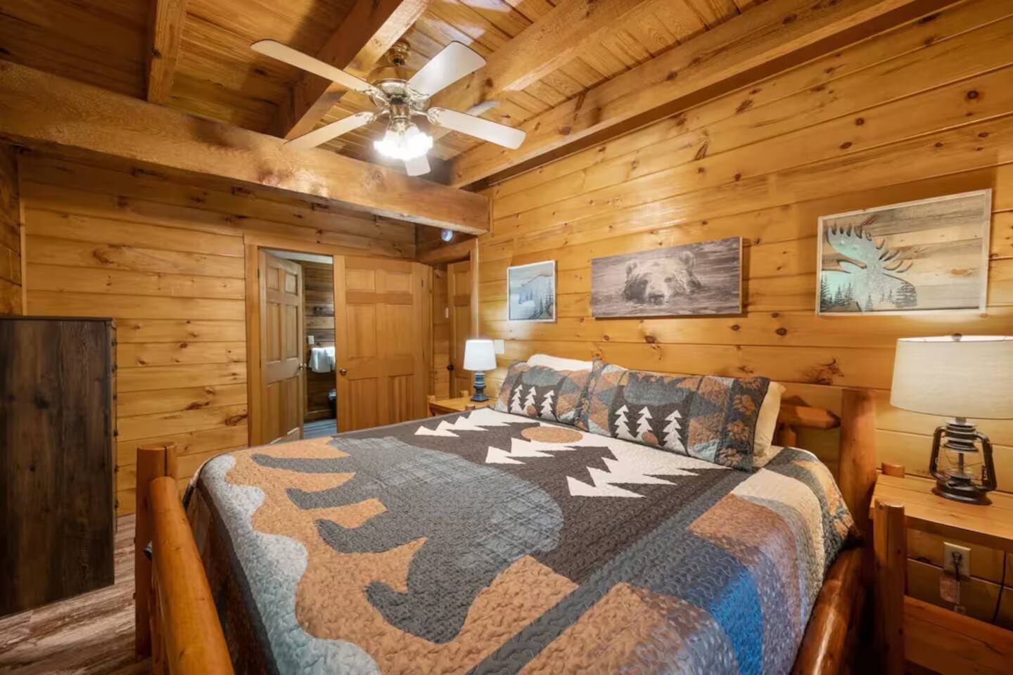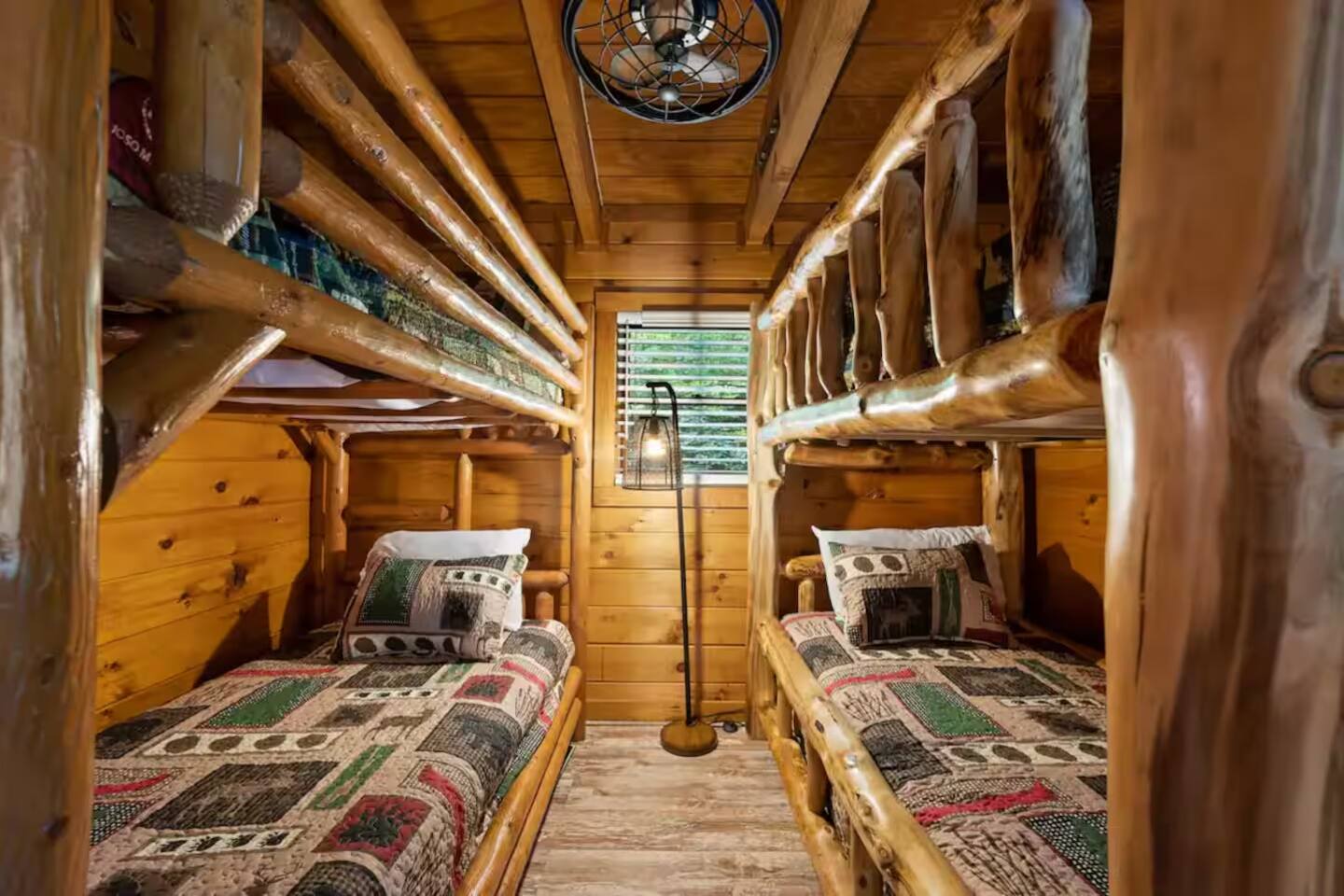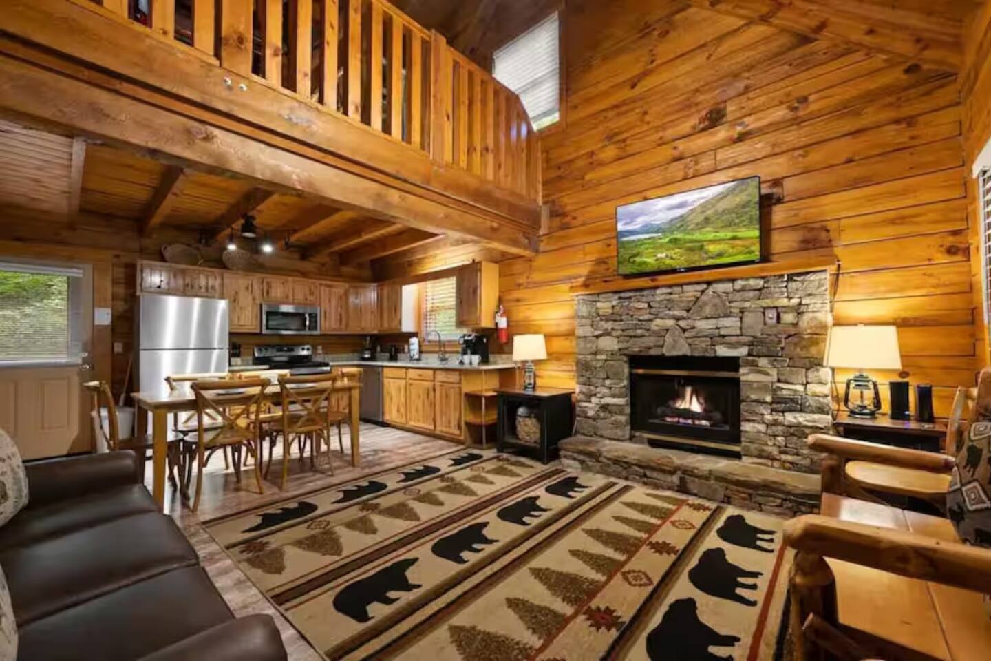 Start your mornings with coffee on one of the multiple decks surrounded by trees and birdsong, or unwind at night in the private, covered hot tub under the stars. Inside, enjoy a cozy open-concept living space with soaring ceilings, a stacked stone fireplace, and plenty of seating for your whole crew. Whether you’re cooking for a crowd or grabbing a quick snack, the fully stocked kitchen with granite countertops and stainless steel appliances has everything you need. The dining area and adjacent breakfast bar provide ample seating for group meals or board game nights. Need to relax or entertain? Head to the game room equipped with a PAC-MAN arcade, a smart TV, bean bag chairs, and a comfy couch. Or gather in the main living room to stream your favorite movies on Roku TVs with high-speed WiFi. Kids will love the rustic log twin bunk beds, while adults can retreat to five comfortable queen/king bedrooms with charming cabin décor and ceiling fans. Several rooms feature en-suite baths or direct bathroom access, including a jetted tub for a spa-like soak. Outdoor features include: Rocking chairs on the porch Grill for cookouts Picnic tables and corn hole under the covered patio Ample parking with easy, flat access Extras to make your stay effortless: ✓ Full-size washer/dryer ✓ Keyless entry ✓ Central heat/AC ✓ Bed linens and towels provided Whether you’re planning a family reunion, a weekend with friends, or a special celebration, Smoky Mountain Cabin Retreat offers everything for a memorable and relaxing stay.