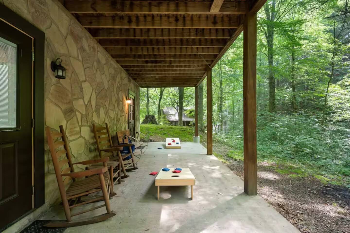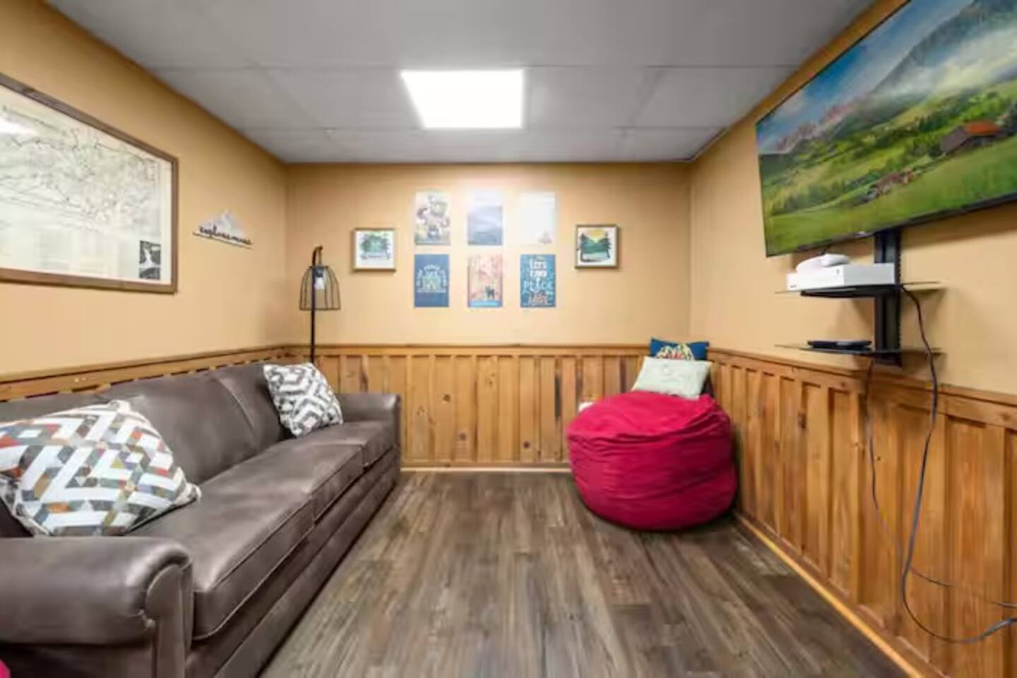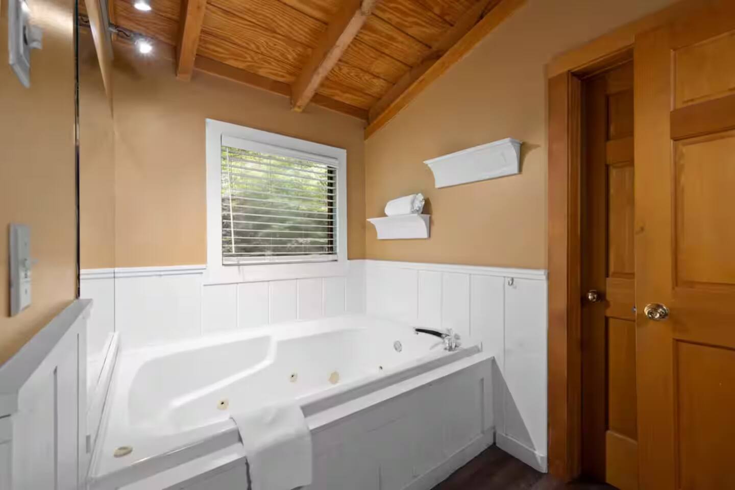 Start your mornings with coffee on one of the multiple decks surrounded by trees and birdsong, or unwind at night in the private, covered hot tub under the stars. Inside, enjoy a cozy open-concept living space with soaring ceilings, a stacked stone fireplace, and plenty of seating for your whole crew. Whether you’re cooking for a crowd or grabbing a quick snack, the fully stocked kitchen with granite countertops and stainless steel appliances has everything you need. The dining area and adjacent breakfast bar provide ample seating for group meals or board game nights. Need to relax or entertain? Head to the game room equipped with a PAC-MAN arcade, a smart TV, bean bag chairs, and a comfy couch. Or gather in the main living room to stream your favorite movies on Roku TVs with high-speed WiFi. Kids will love the rustic log twin bunk beds, while adults can retreat to five comfortable queen/king bedrooms with charming cabin décor and ceiling fans. Several rooms feature en-suite baths or direct bathroom access, including a jetted tub for a spa-like soak. Outdoor features include: Rocking chairs on the porch Grill for cookouts Picnic tables and corn hole under the covered patio Ample parking with easy, flat access Extras to make your stay effortless: ✓ Full-size washer/dryer ✓ Keyless entry ✓ Central heat/AC ✓ Bed linens and towels provided Whether you’re planning a family reunion, a weekend with friends, or a special celebration, Smoky Mountain Cabin Retreat offers everything for a memorable and relaxing stay.