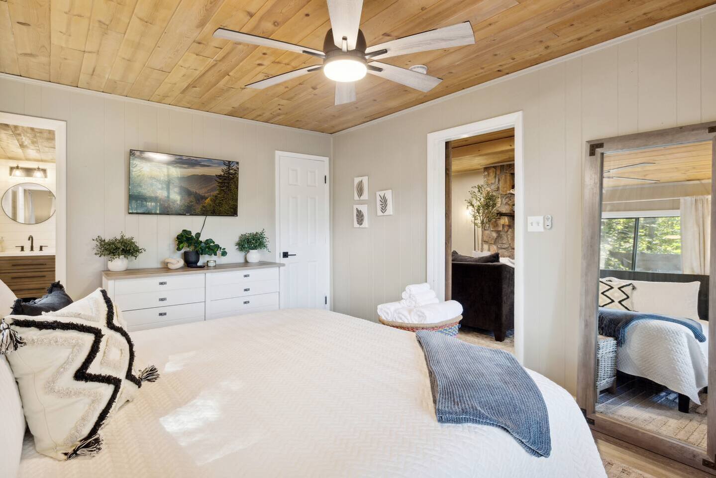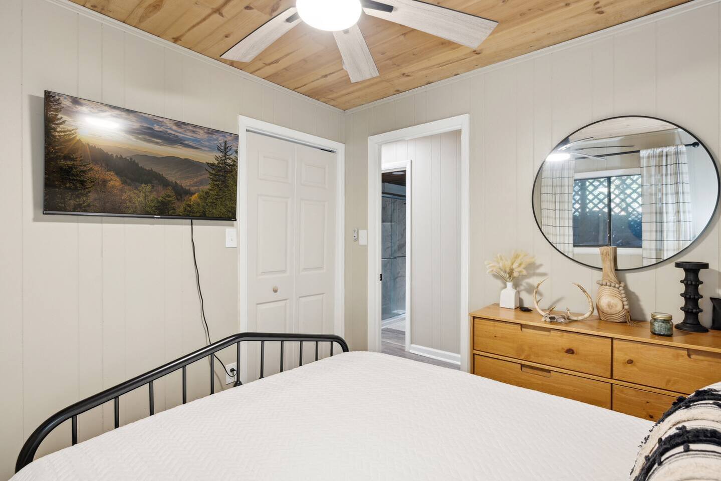 Relax in your own private suite with gorgeous views of Mt. LeConte! This lower-level retreat offers 2 bedrooms, 2 bathrooms, a full kitchen, and a comfortable living area—perfect for couples, friends, or budget-conscious travelers seeking space and privacy. Just minutes from Gatlinburg and Pigeon Forge, it’s a cozy home base for exploring the Smoky Mountains.