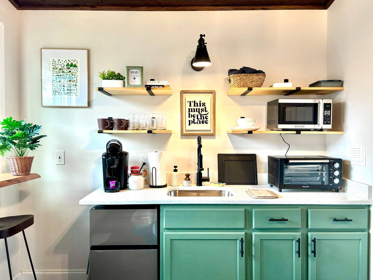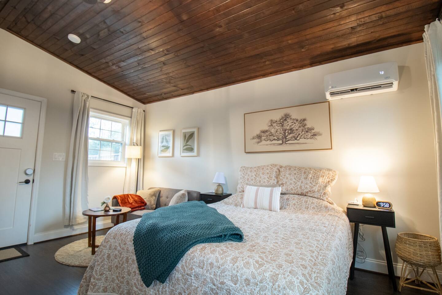 Charming Studio Retreat w/ Hot Tub by Brick & Home – your private oasis in the heart of Taylors, SC. Step into this beautifully designed guesthouse, tucked beneath mature trees in a quiet, fenced backyard just minutes from Greenville. Perfect for couples, solo travelers, or work-from-anywhere guests, this private studio combines modern charm with total relaxation.