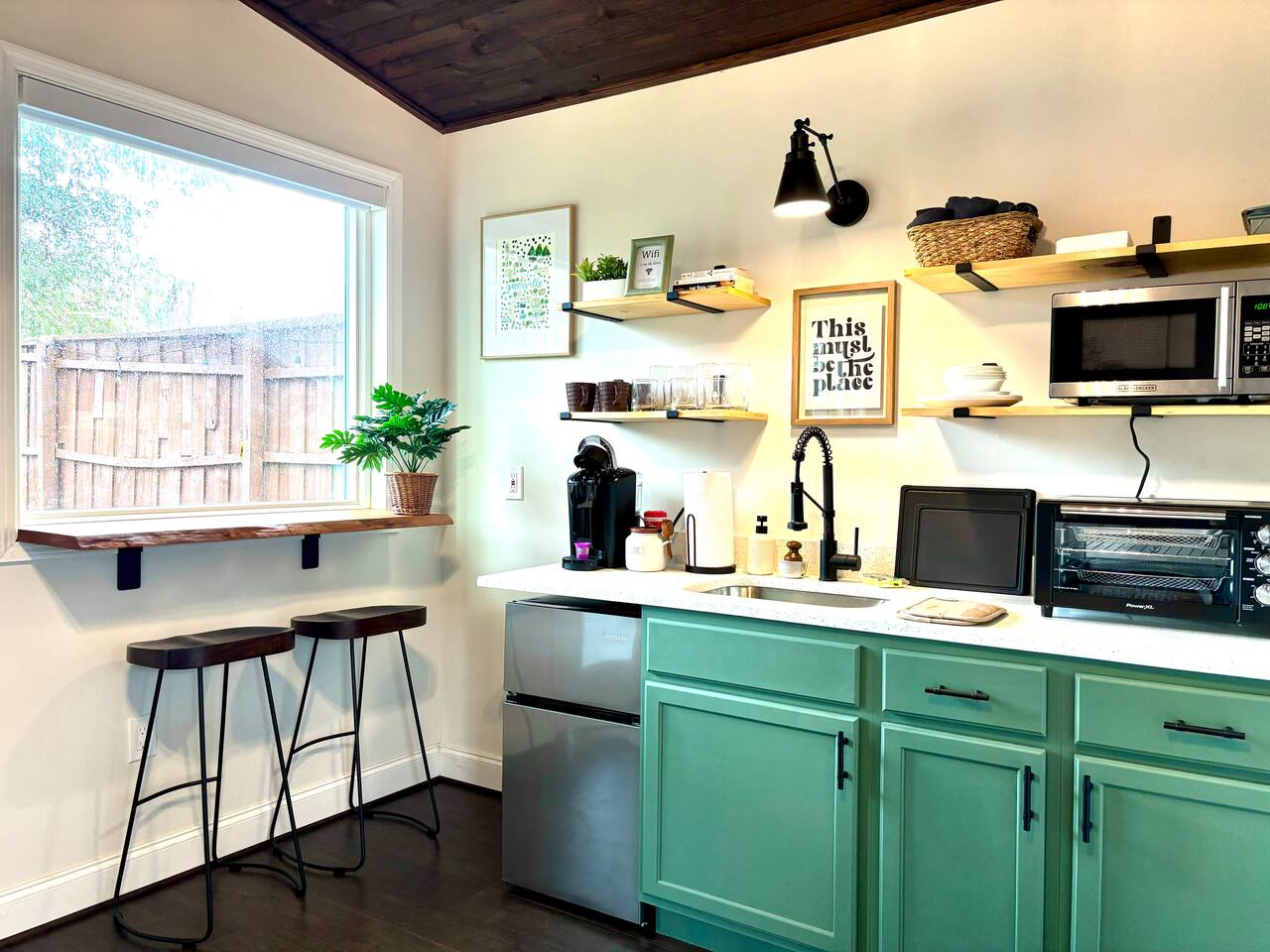 Guests have private access to the entire guesthouse and fenced backyard. This includes the hot tub, fire pit, hammock, outdoor seating area, and indoor kitchenette, bed, bathroom, and lounge space. A unique door code will be sent 24 hours before check-in for smooth self-entry.